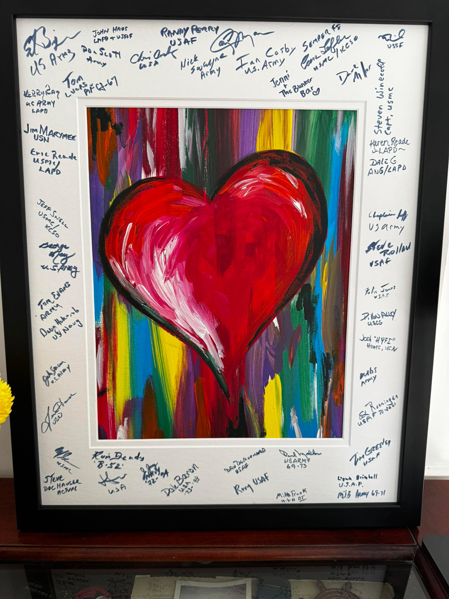 Ray had a heart for everyone at the Post Falls Chapter. The veteran wives painted a beautiful heart during one of our ladies’ night out events, and I presented Ray with it a couple of months ago. I told him that we wanted to show him that he was not just in our prayers, but in our hearts. He was quite touched by this show of respect, friendship, and by the love of Christ which we shared for him.